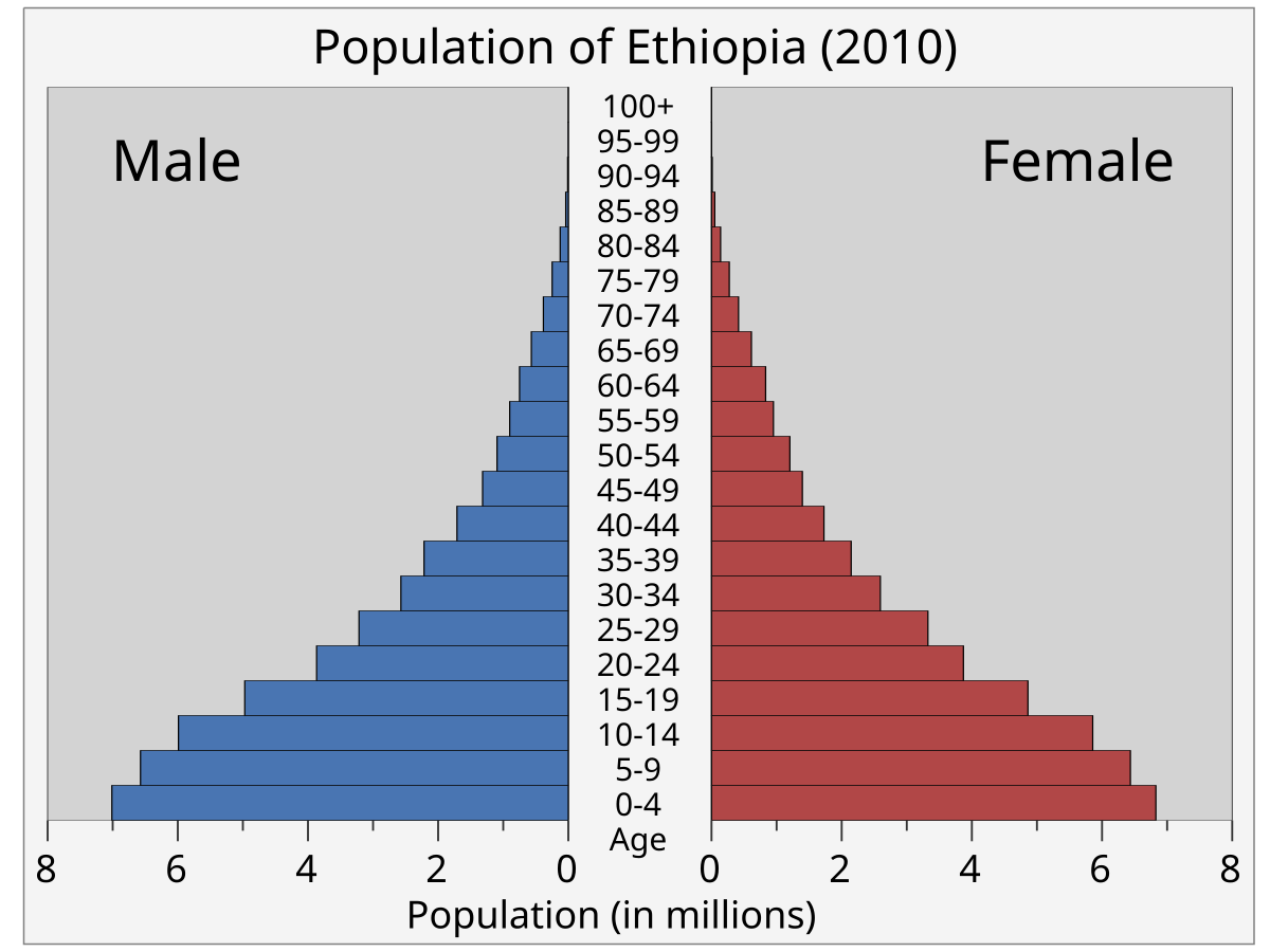 בדומה לשאר היבשת, גם באתיופיה פירמידת הגילאים בה היא מאוד צעירה.